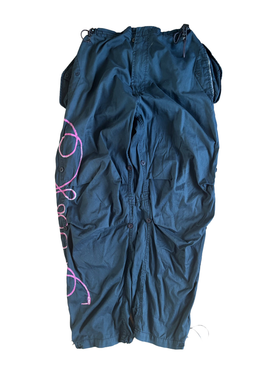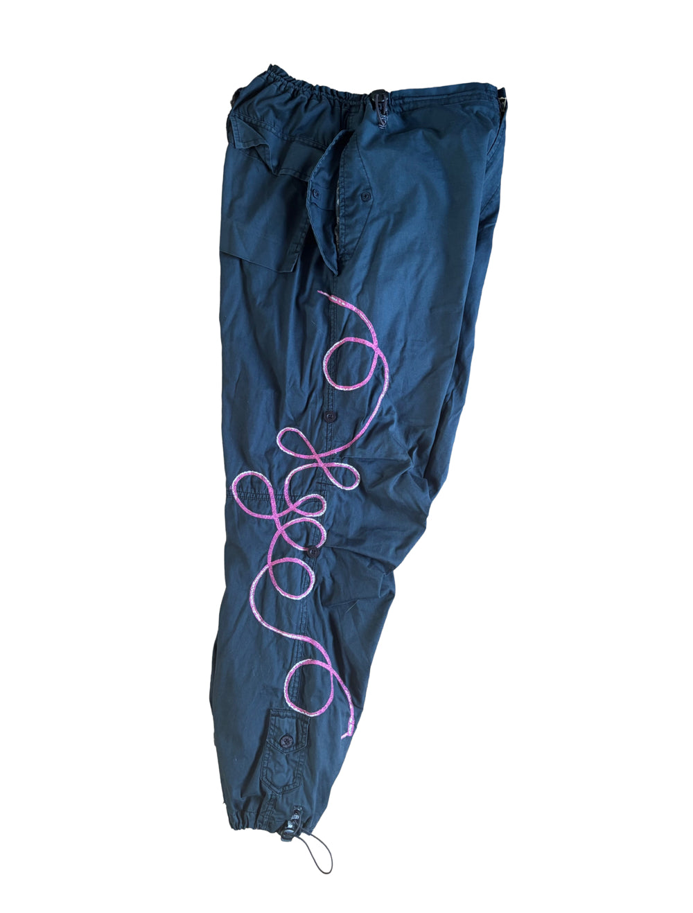 Lovely pair of snopants featuring spiralling pink embroidery throughout, in good condition however a tear on the back that is easily sewable, so I have discounted the pair of these a lot