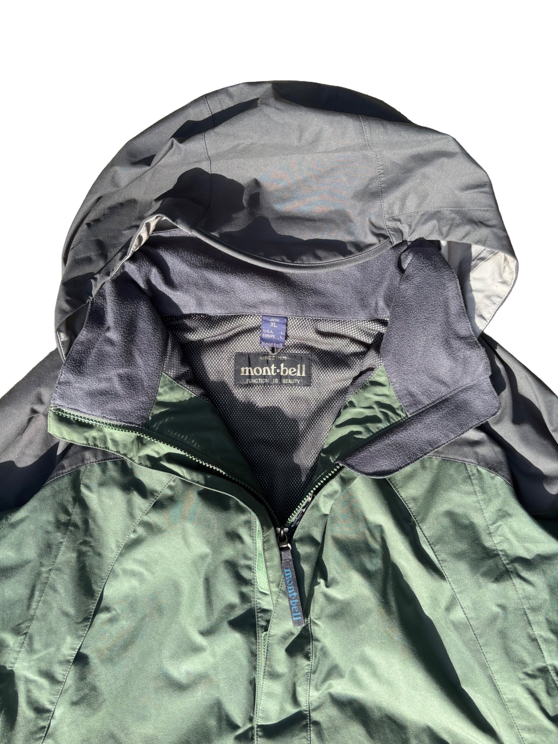 Durable Montbell nylon shell jacket in deep green tone. Perfect for the upcoming season & outdoor use.