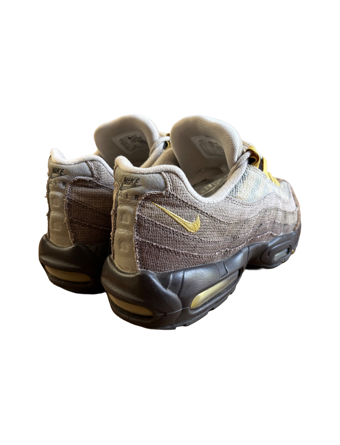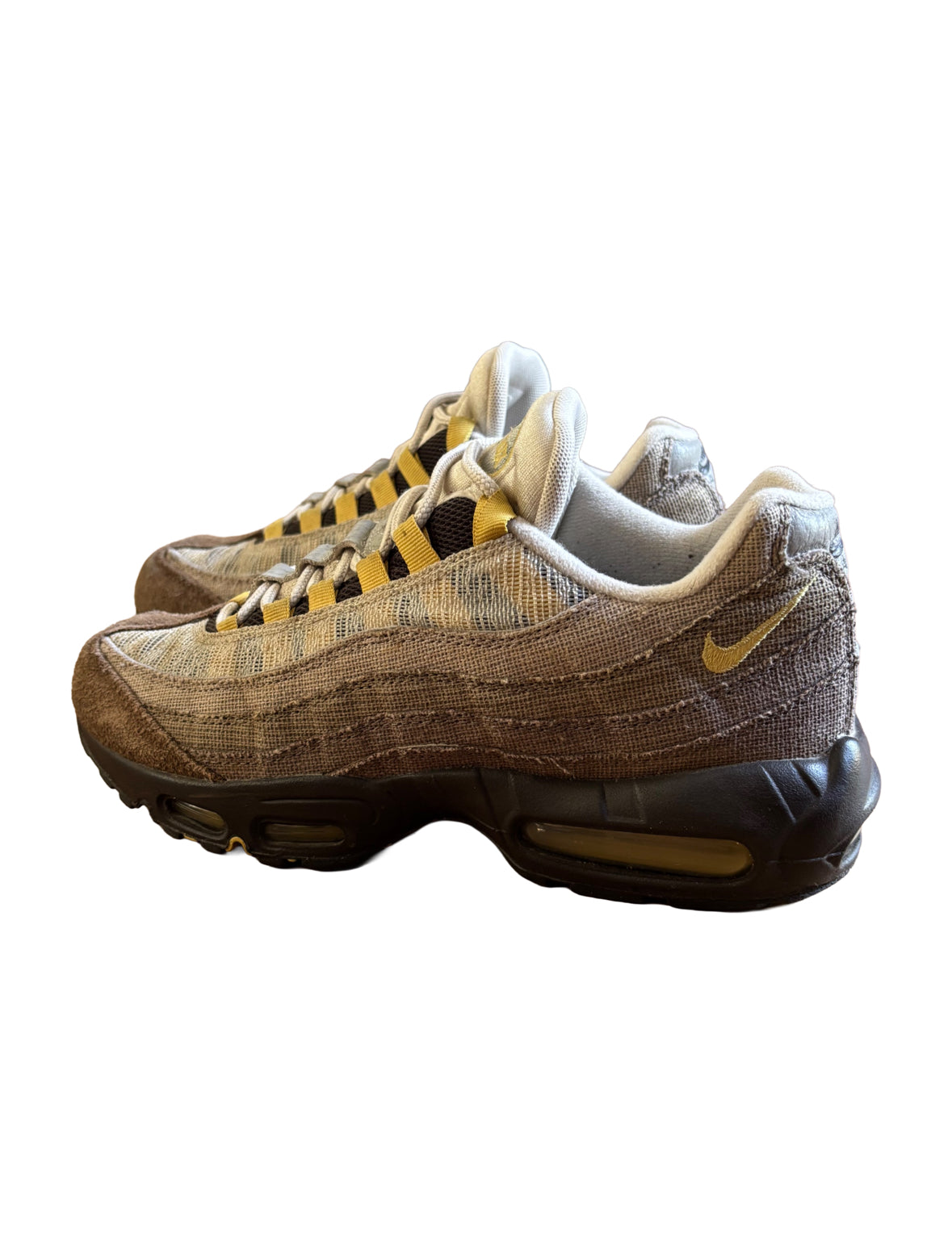 This pair comes in a mix of earthy browns and tans with layered textures running through the uppers. Hits of yellow come through on the lace loops, mini Swoosh and Air bubbles, adding a nice bit of contrast against the darker midsole. A clean neutral base with just enough pop to stand out, easy to wear day to day.