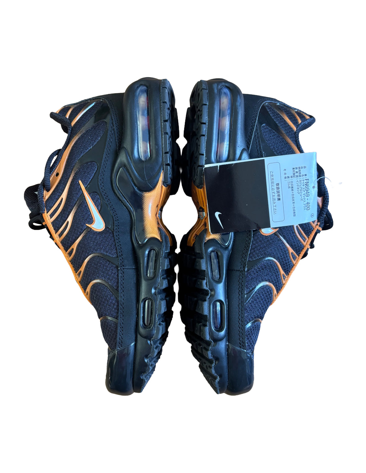 A classic TN build in a black base with bold orange accents running through the uppers, Swoosh and Air units. The wavy overlays and mesh keep it breathable and structured, while the Tuned Air cushioning underneath locks in that comfort and street feel the Air Max Plus is known for.