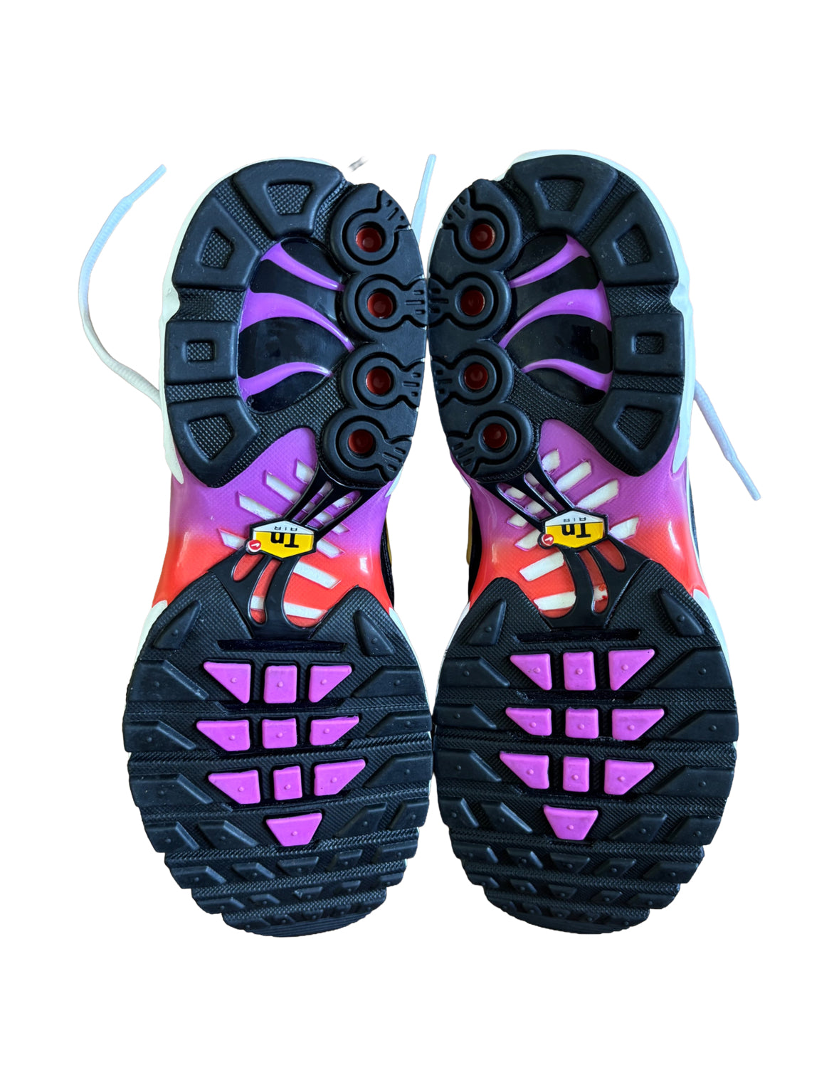 This pair rocks the iconic TN silhouette with a striking multi-colour base and neon accents that pop off the wavy overlays and branding. The mesh construction keeps things breathable and structured, while those signature Tuned Air units lock in that cushioned comfort we all love.