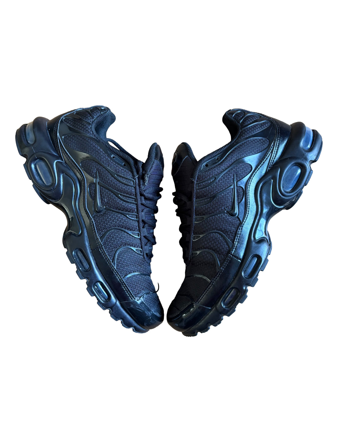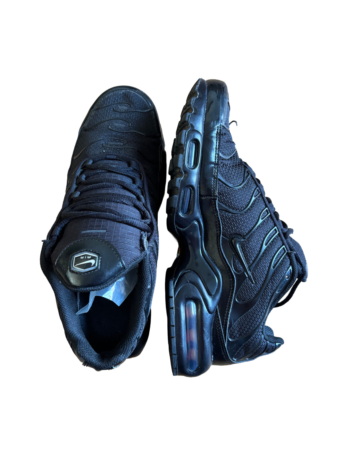 This pair brings that iconic TN silhouette in sleek all-black tones—mesh upper, wavy overlays, and branding all keep that stealthy, clean look. The signature Tuned Air cushioning underfoot locks in comfy streetwear energy every time you step.