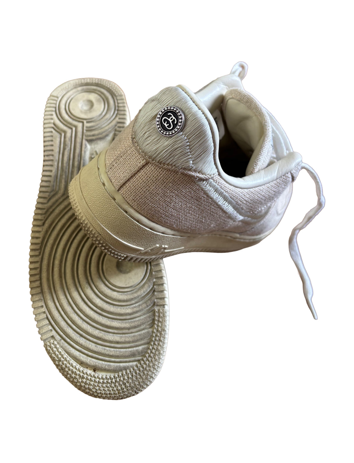 A sleek collab between Nike and Stüssy, this all-black AF1 comes crafted in woven canvas, featuring heavy embroidery on the Swoosh and that signature double-“S” logo stitched on the toe. Finished with dual-branded tongue tags and subtle Stüssy detailing on the heel—clean, premium, and unmistakably streetwear.