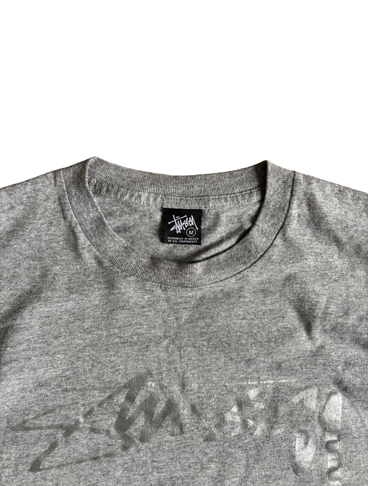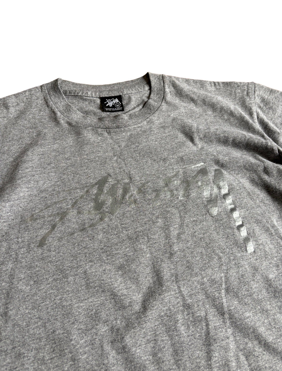 Stussy Grey Signature Graphic T-Shirt - Medium