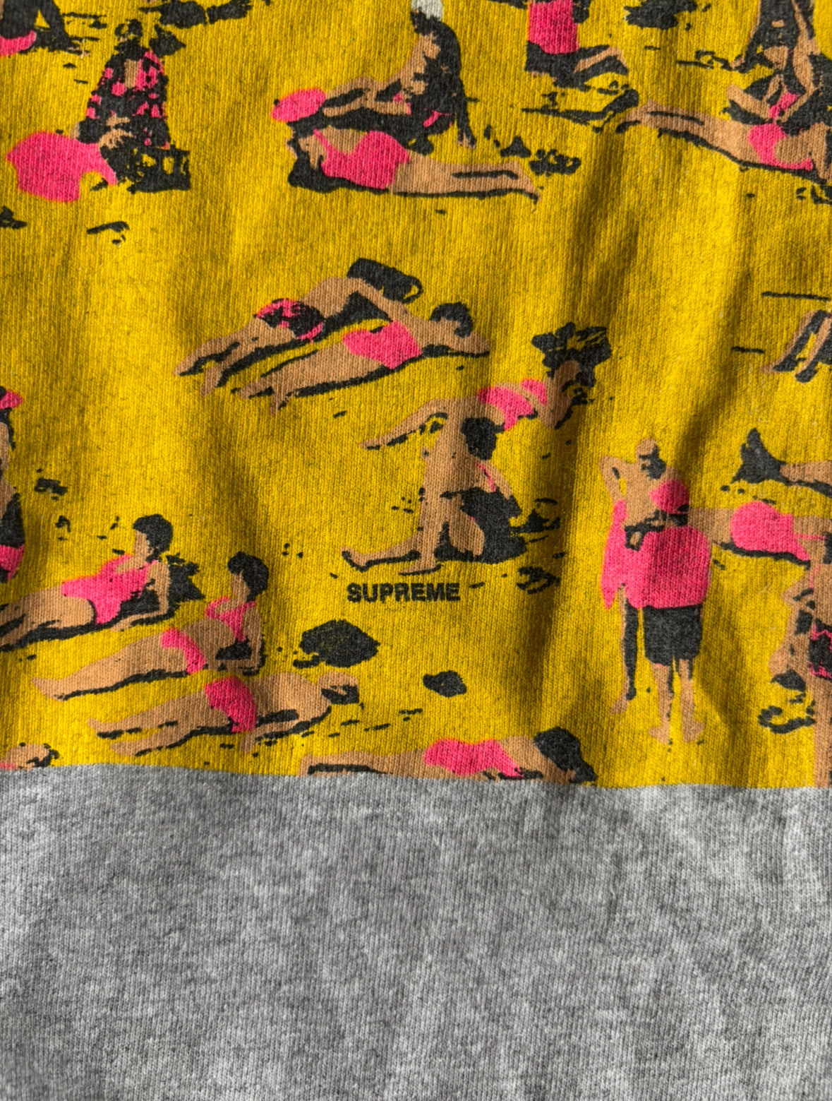 Grey blank featuring yellow & pink bold print on front of t-shirt, oggg supreme