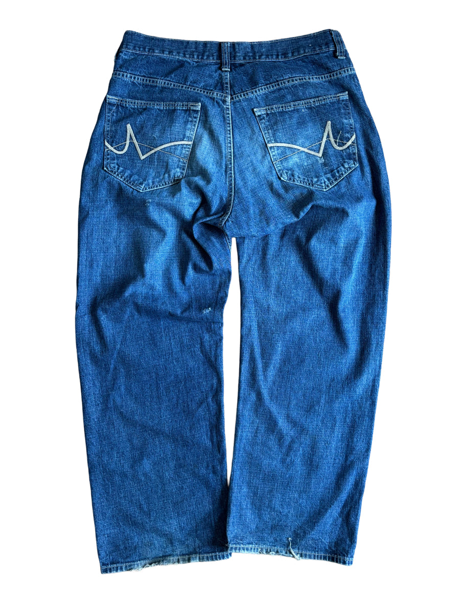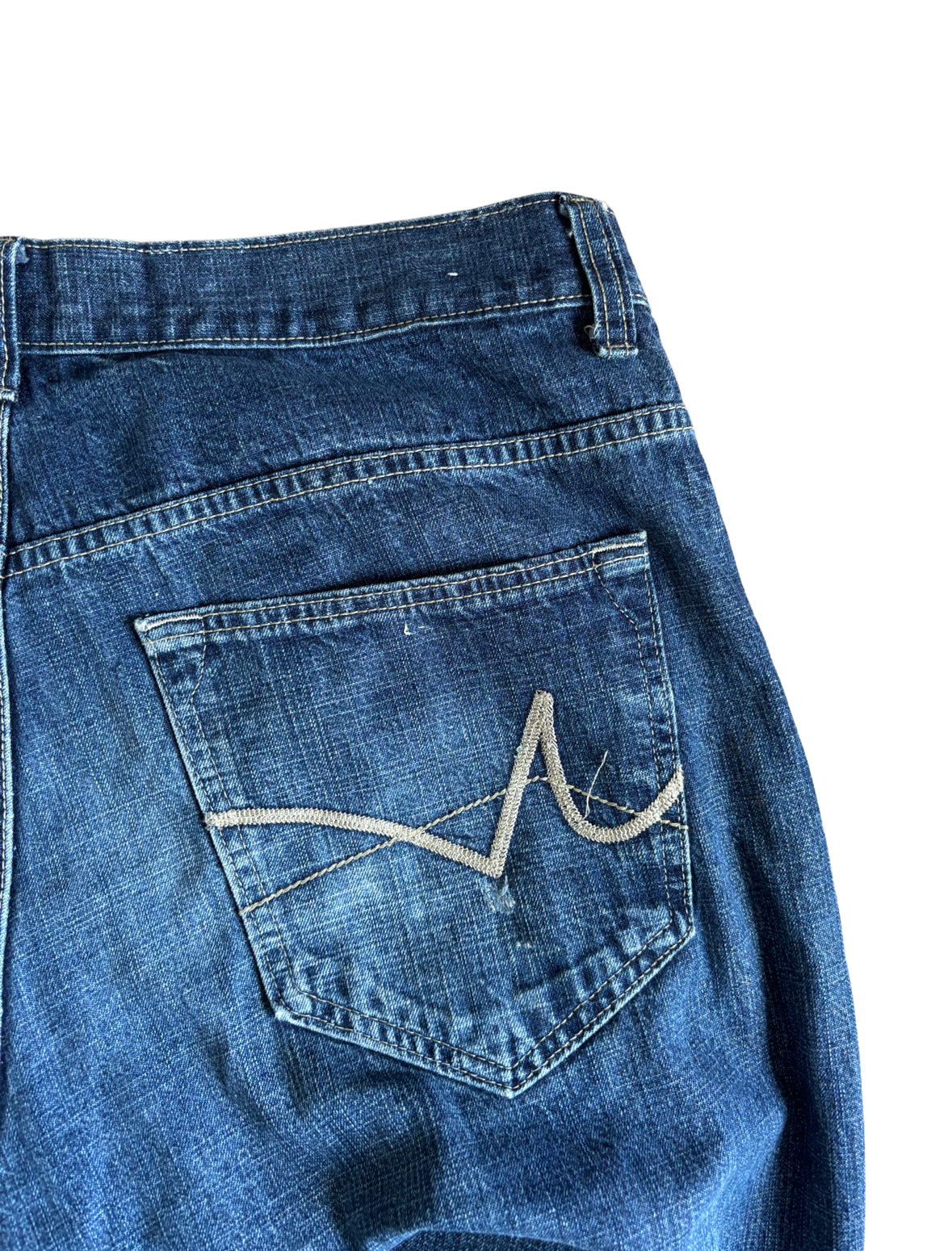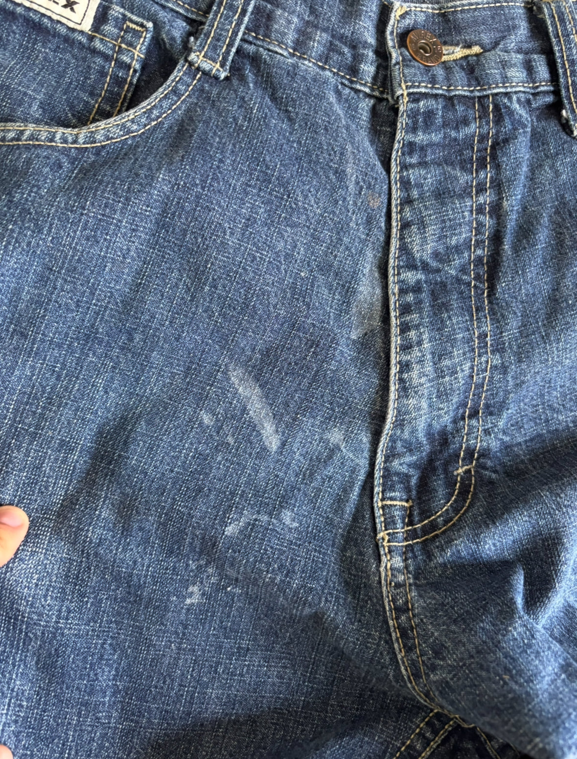 Lovely pair of baggy avirex jeans featuring branded embroidery on back pockets, some small stains on front of jeans however could probably remove in the wash, doesn’t take anyway from the jeans at all