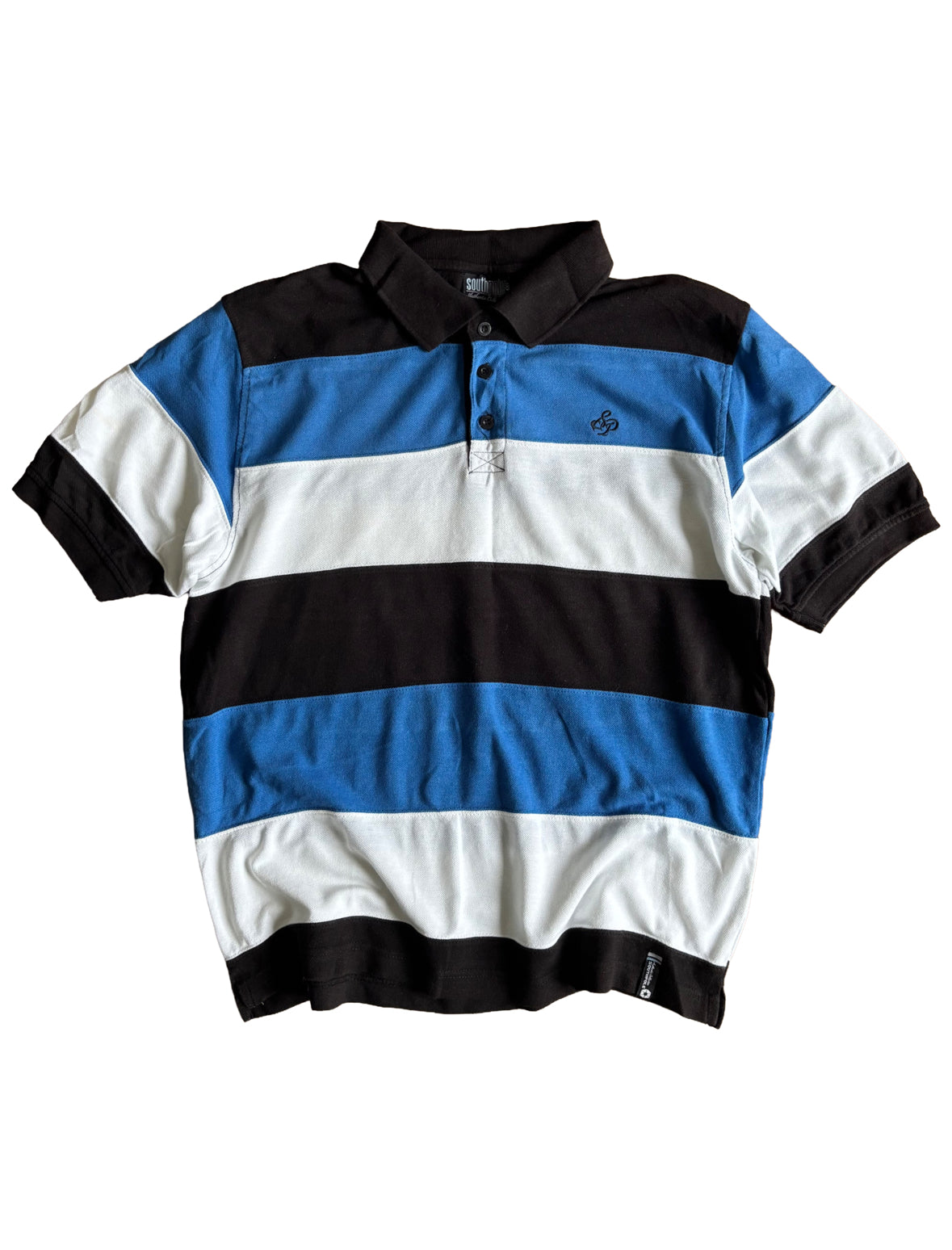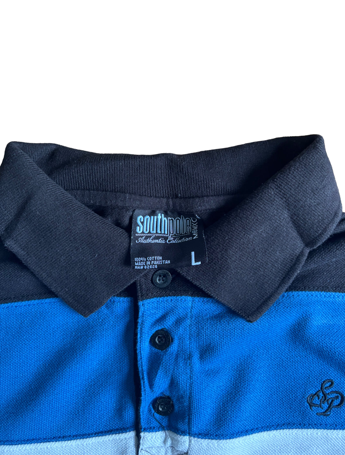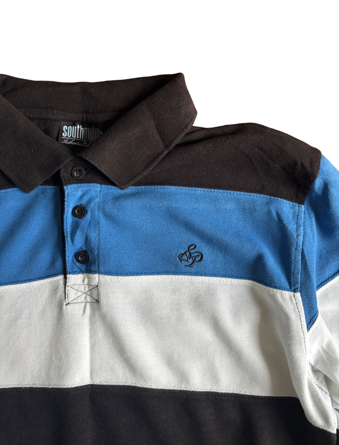 Vintage Southpole Blue & White Striped Polo Shirt - Large